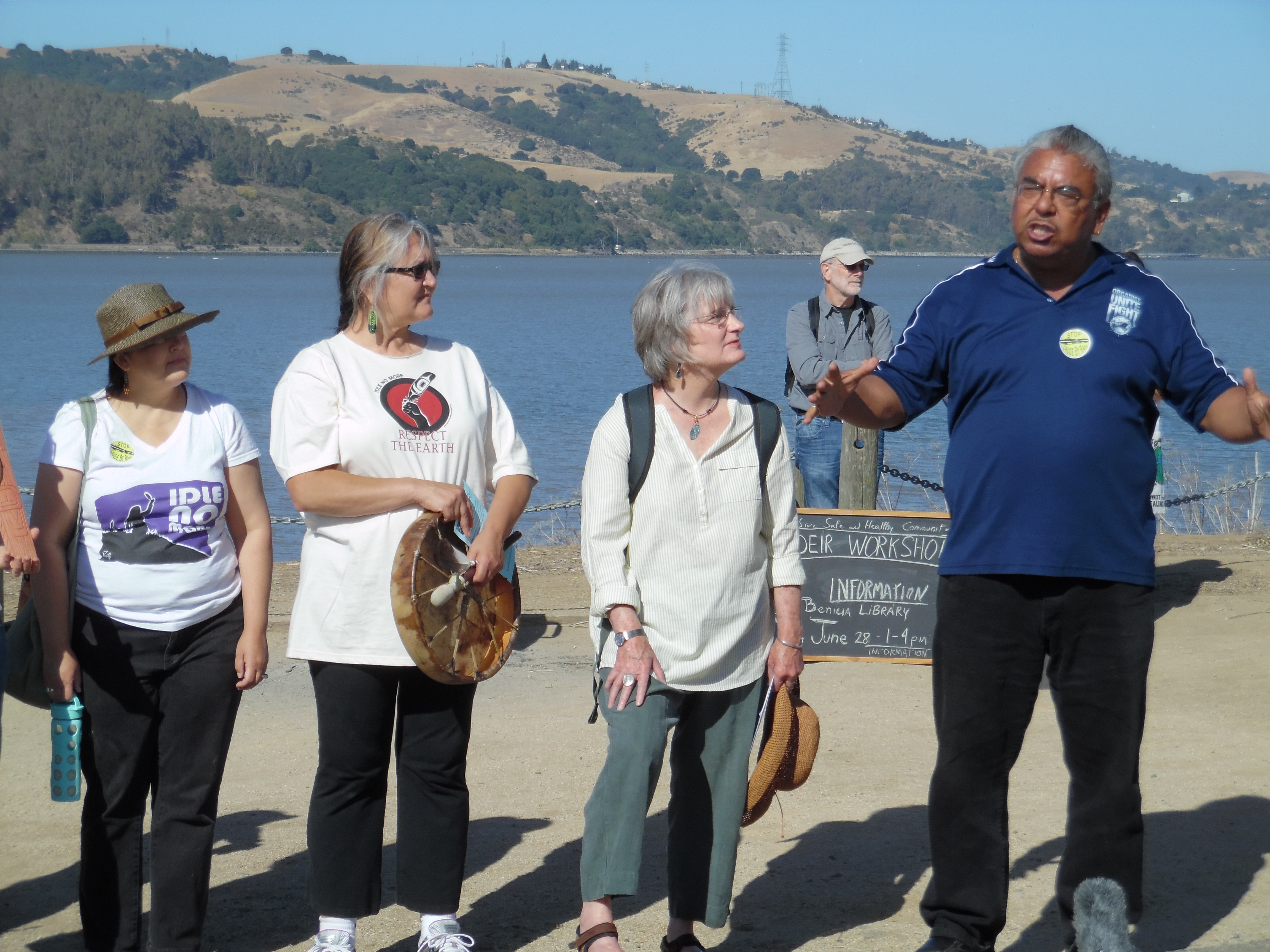 Our third Connect the Dots Healing walk was a big success! Idle No More led the way as 50-60 concerned citizens walked over 14 miles from Benicia all the way to Rodeo. Composed of walkers both young and old, bicyclists, kayaks, dogs, and one horse, most carried hand painted banners, signs, or flags. It was a beautiful sunny day. Speakers included Pennie Opal Plant of Idle No More, Marilyn Bardet and Andres Soto of Benicians for a Safe and Healthy Community, and Ann Puntch of Crockett-Rodeo United to Defend the Environment (CRUDE).