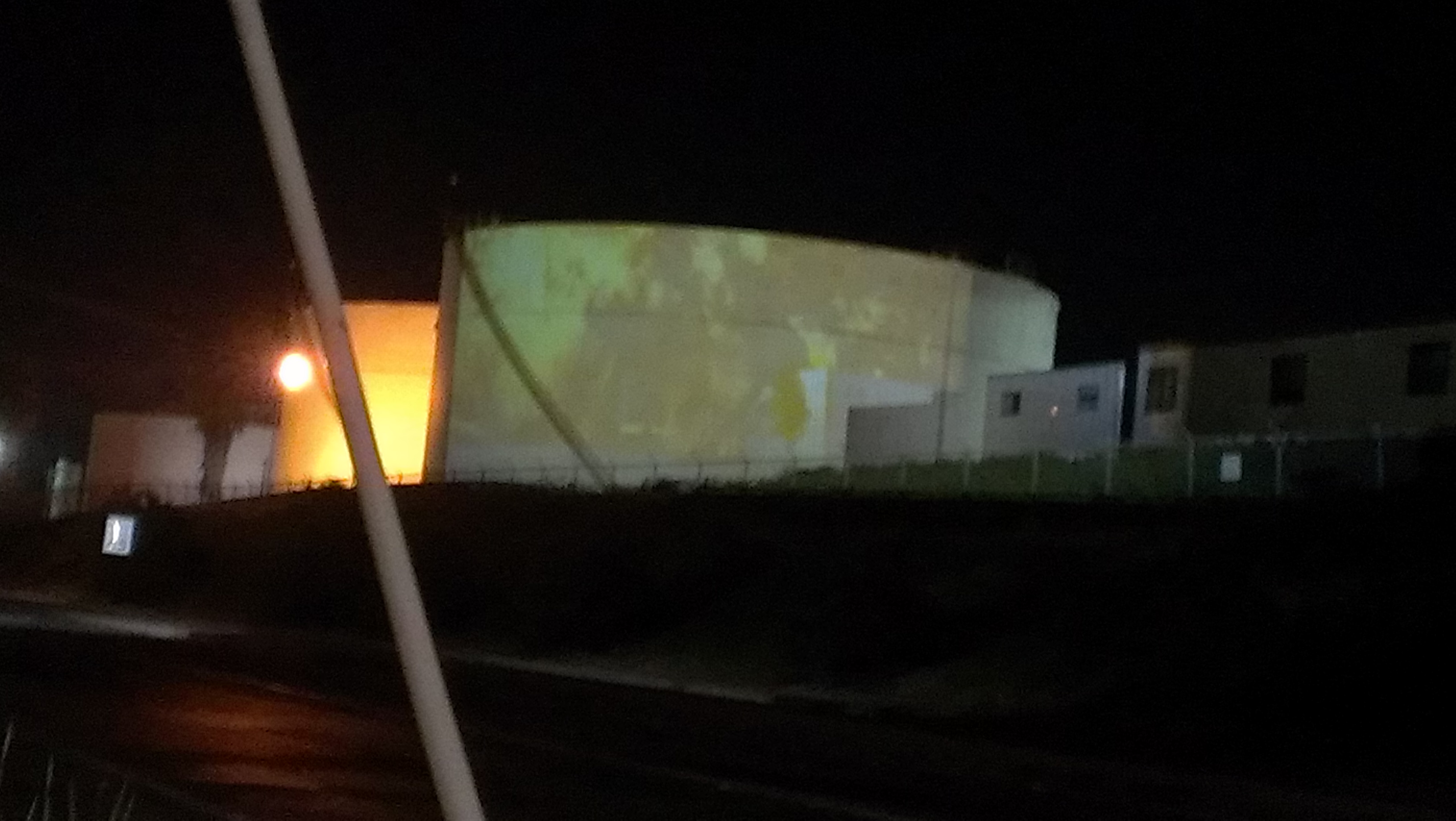 Strike Supporters Project Images onto Tesoro Tanks, 3-6-15