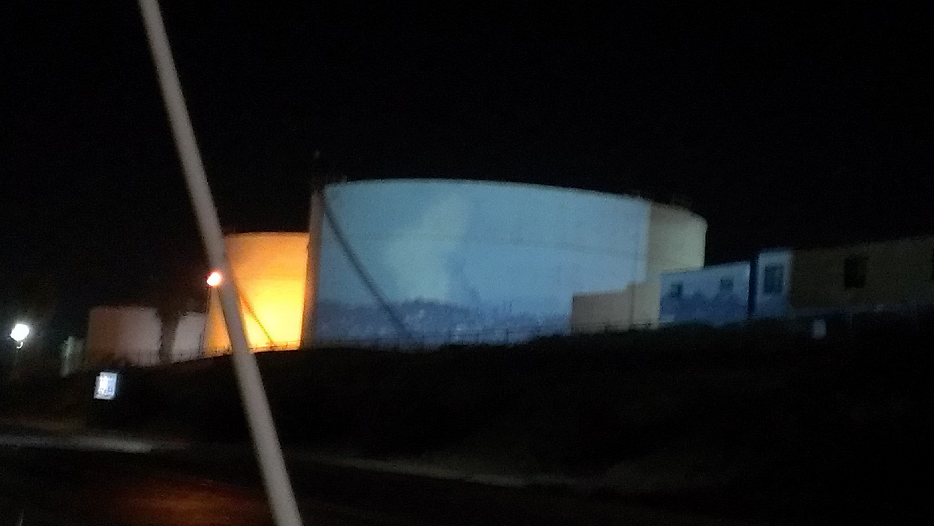 Strike Supporters Project Images onto Tesoro Tanks, 3-6-15